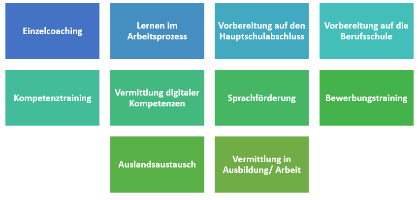 Ziel ist eine Vermittlung in Ausbildung, Arbeit oder ein weiterführendes Projekt.
